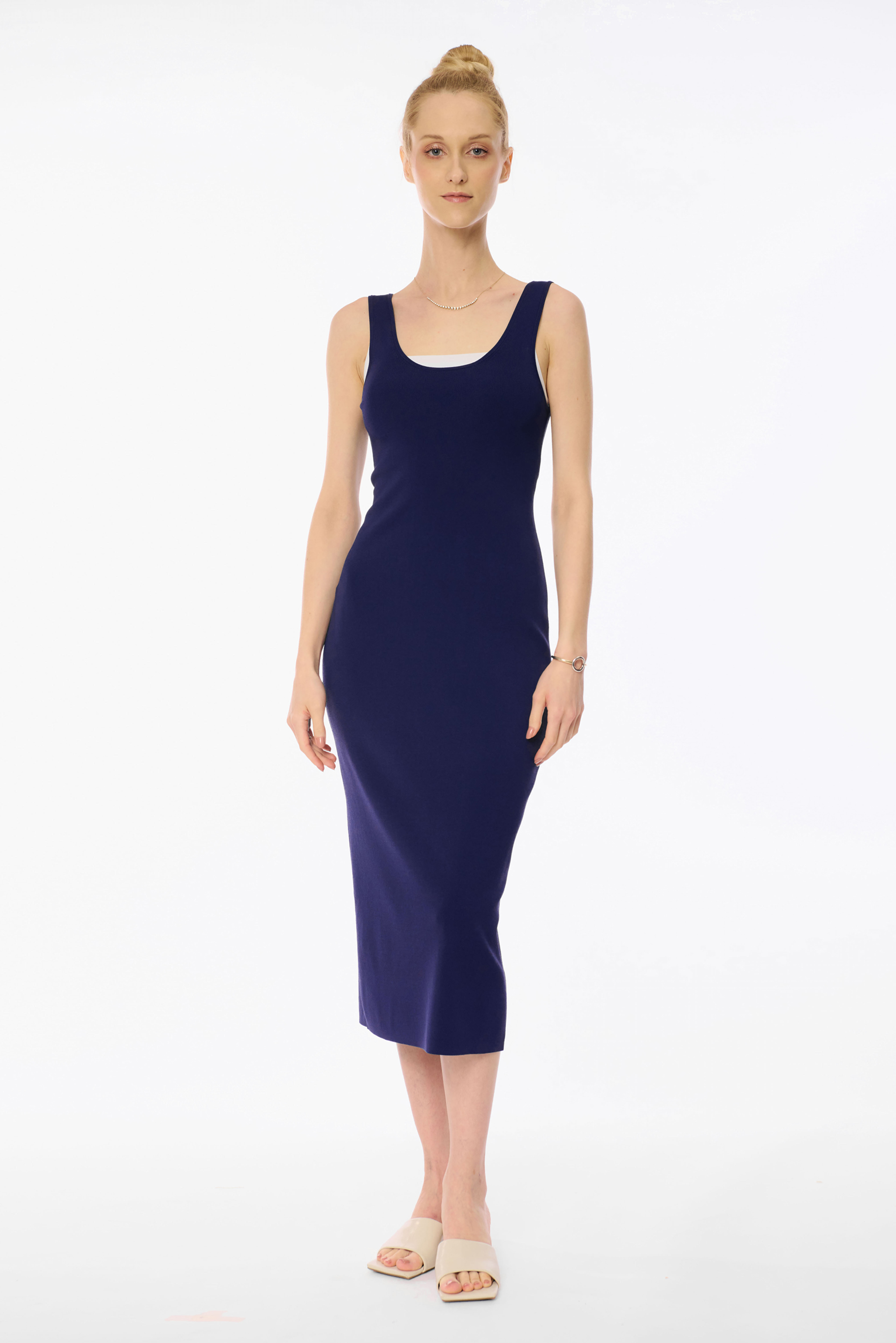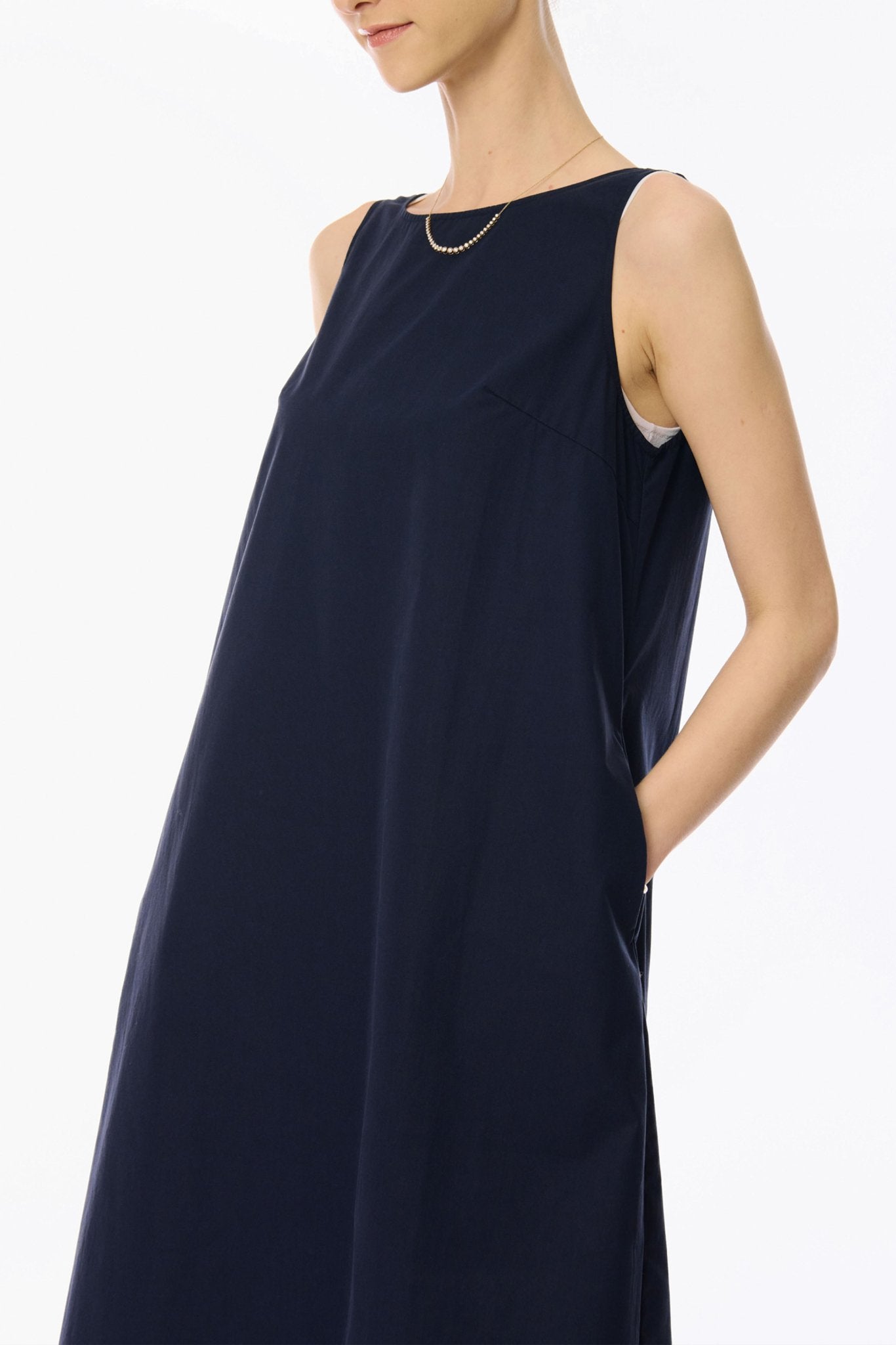 MIU 棉府綢連身裙(海軍藍)