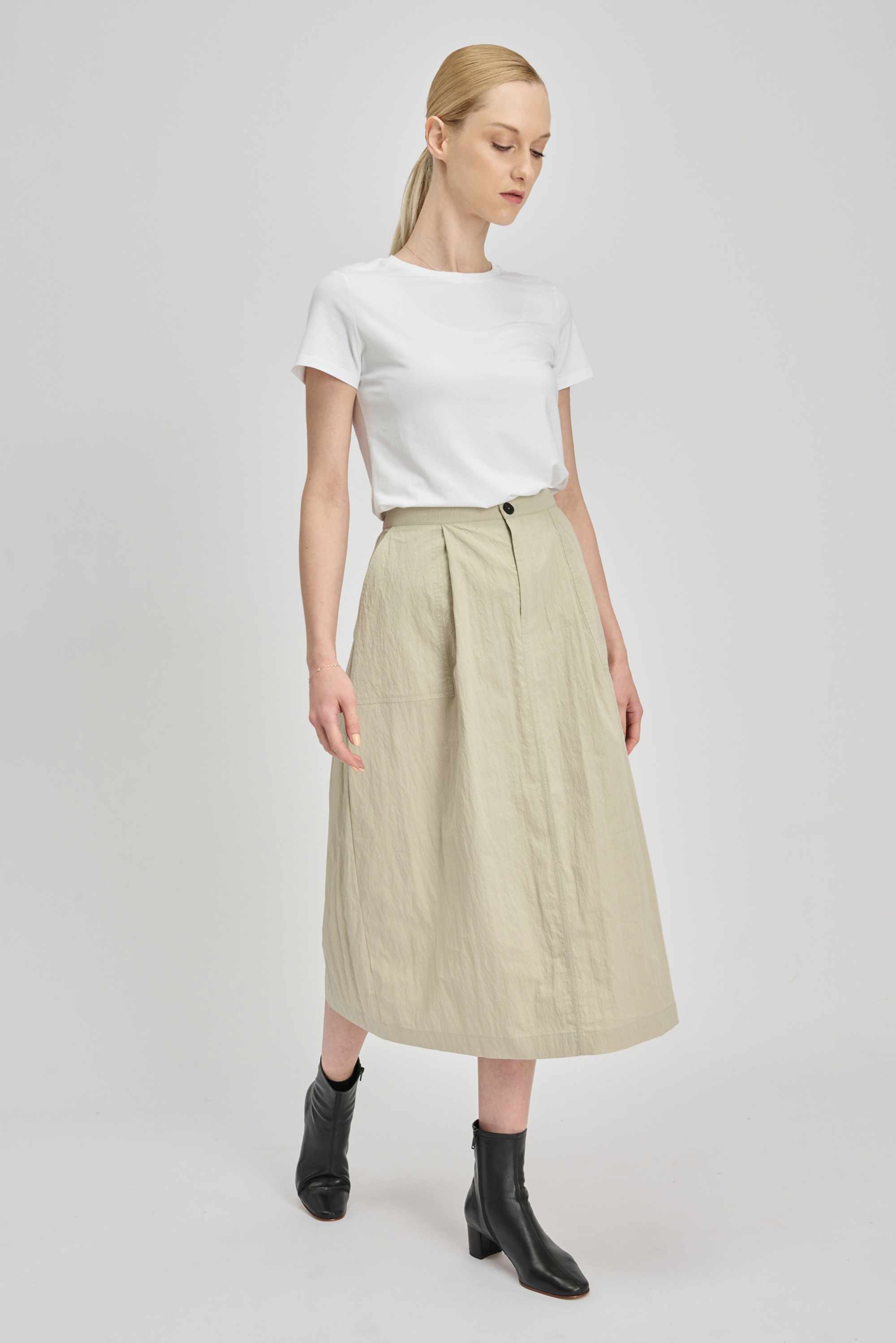 RALLY 棉混紡中長半身裙 (鼠尾草色)