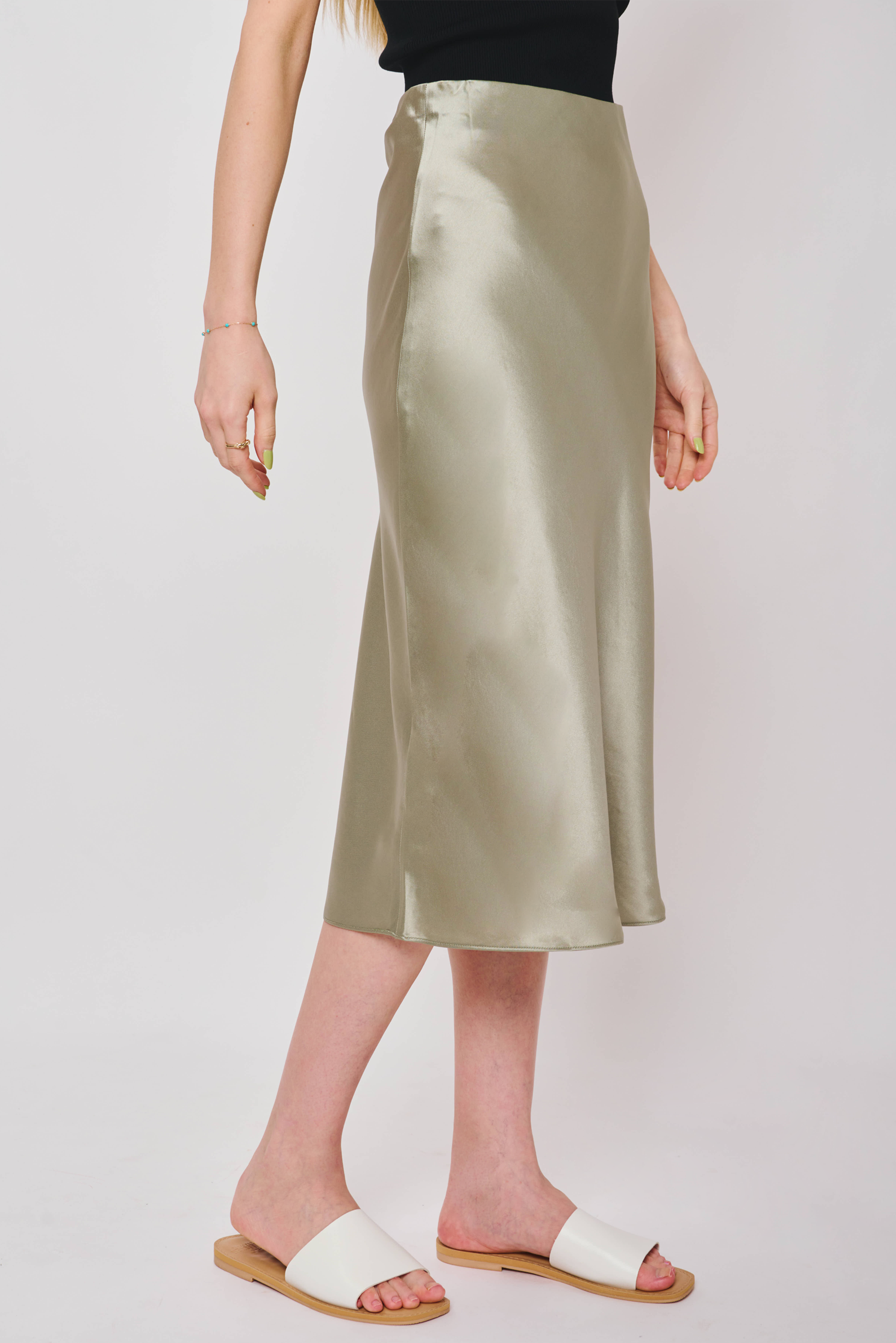GLITTER B 緞面中長半截裙(鼠尾草綠色)