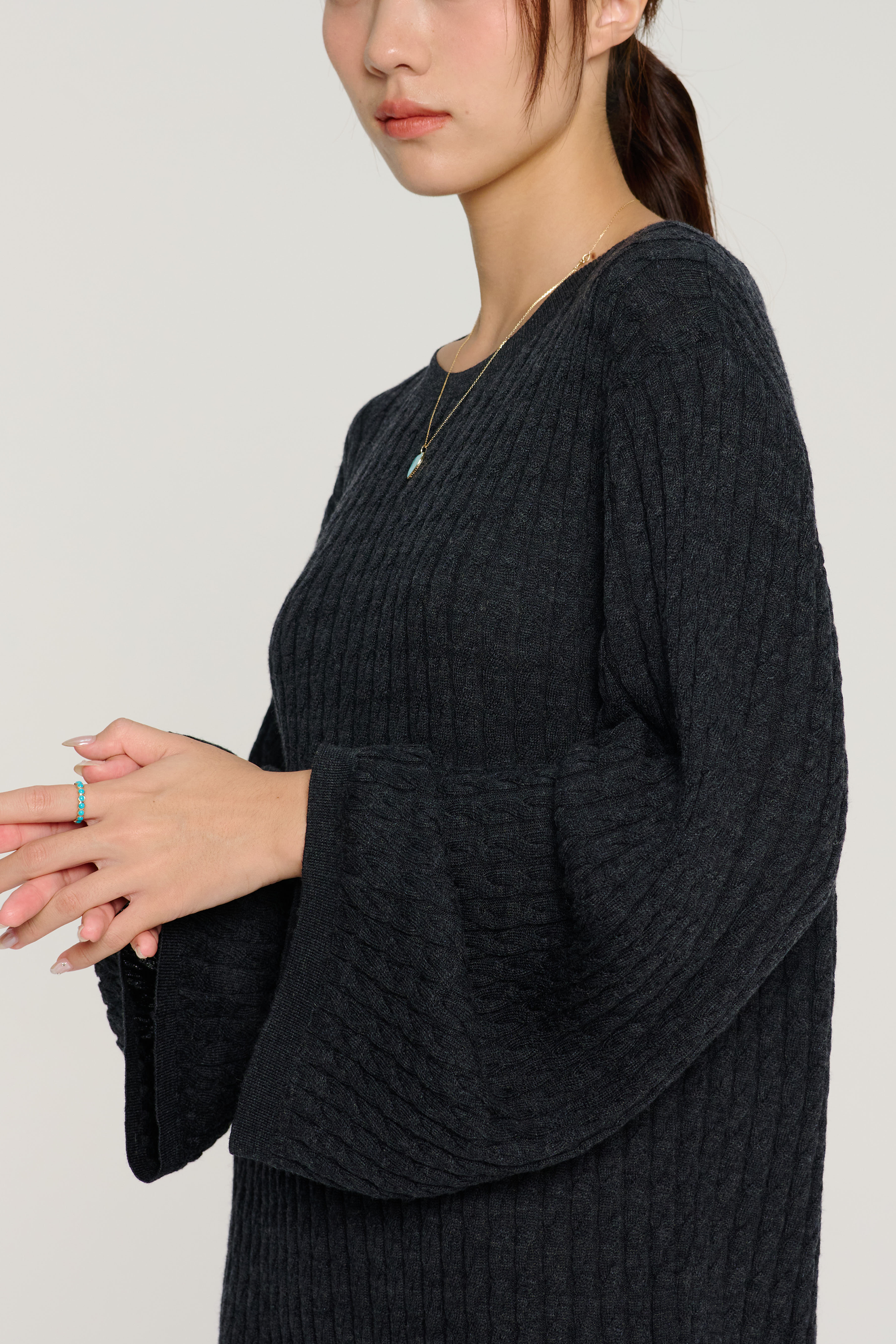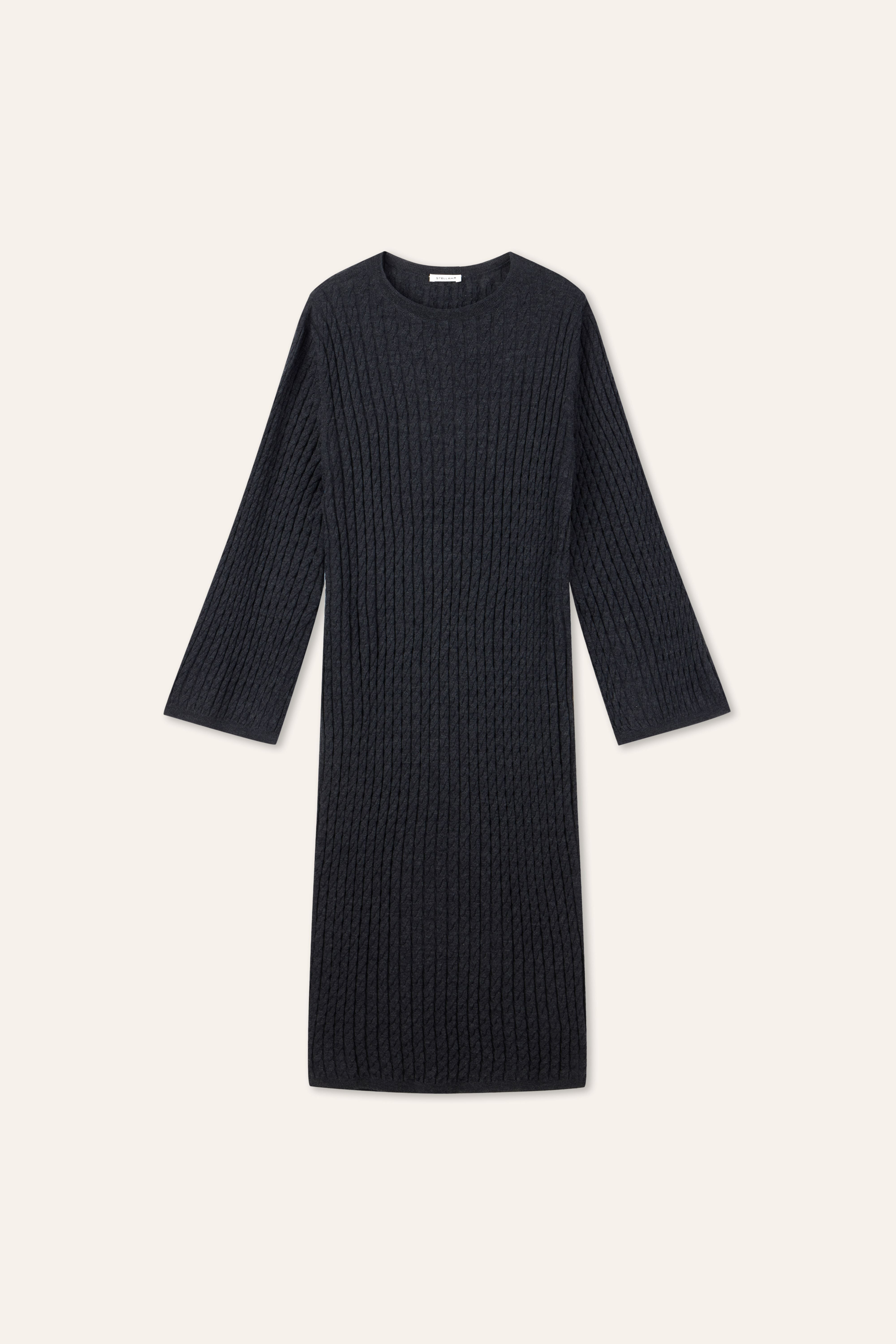 ELEGANCE 羊毛麻花針織連衣裙(灰色)